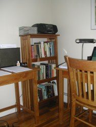 And there you have it, my work space. If I owned this house, it would probably be fancier in some way. But it’s functional, and here I write my stories and poems and essays. I suppose finally that’s what counts, the output. Right?