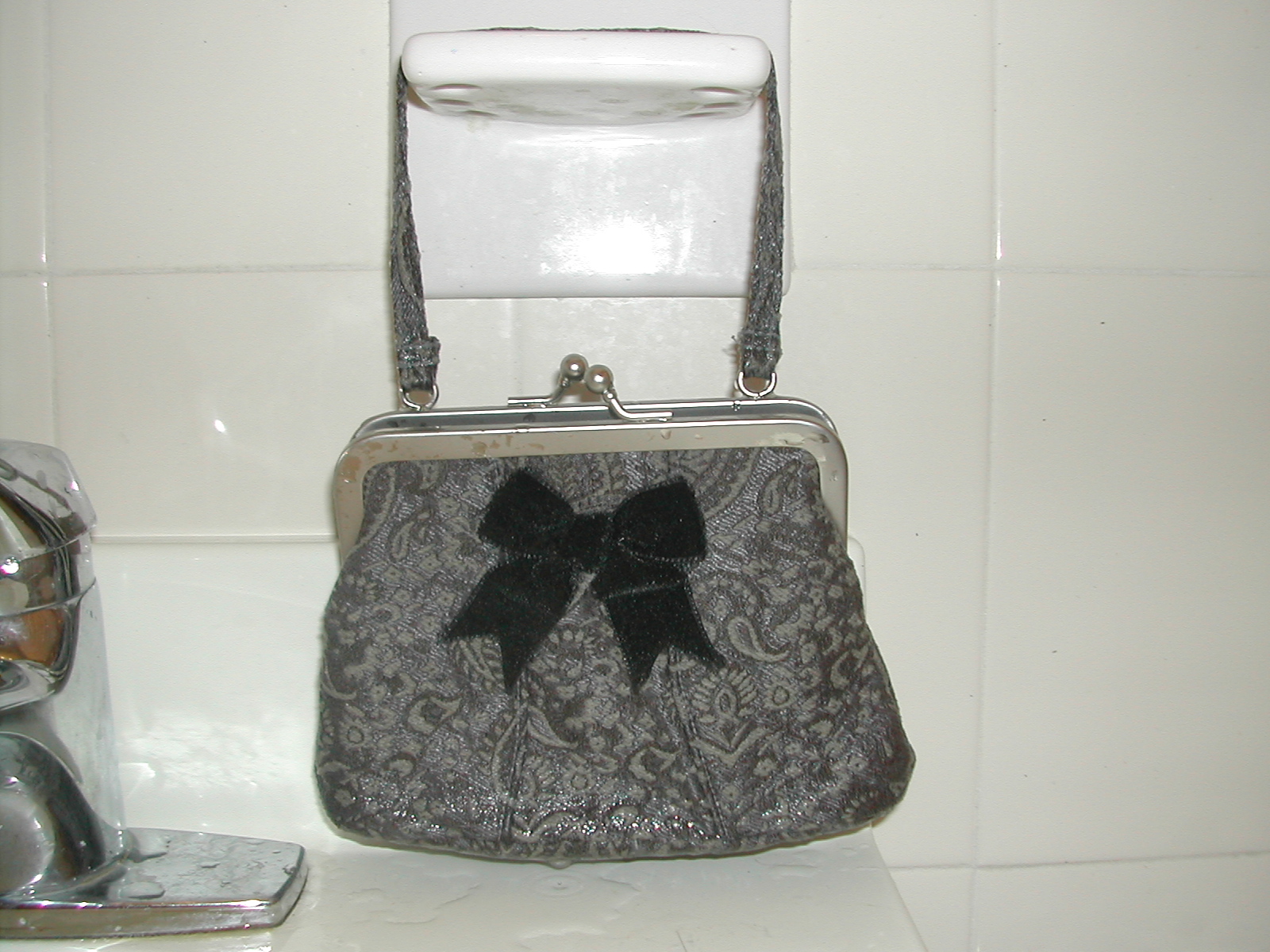 First, I bought a small evening purse. I’m going to show you all of these items as they were processed once I brought them home. Here is the purse being washed in the sink: