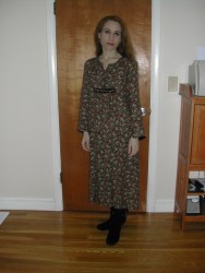 The first two are of me dressed for the convention and a display of weapons by the Higgins Armory Museum. Someone complimented me on this dress, and I said that I had bought it at the thrift shop where all the Pre-Raphaelite models bought their clothes.