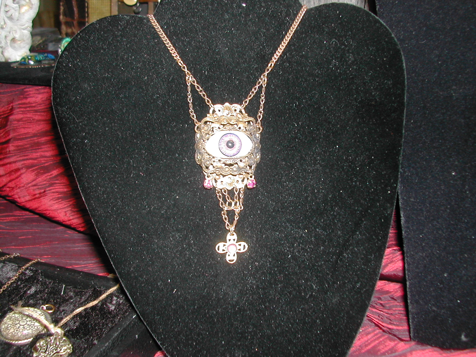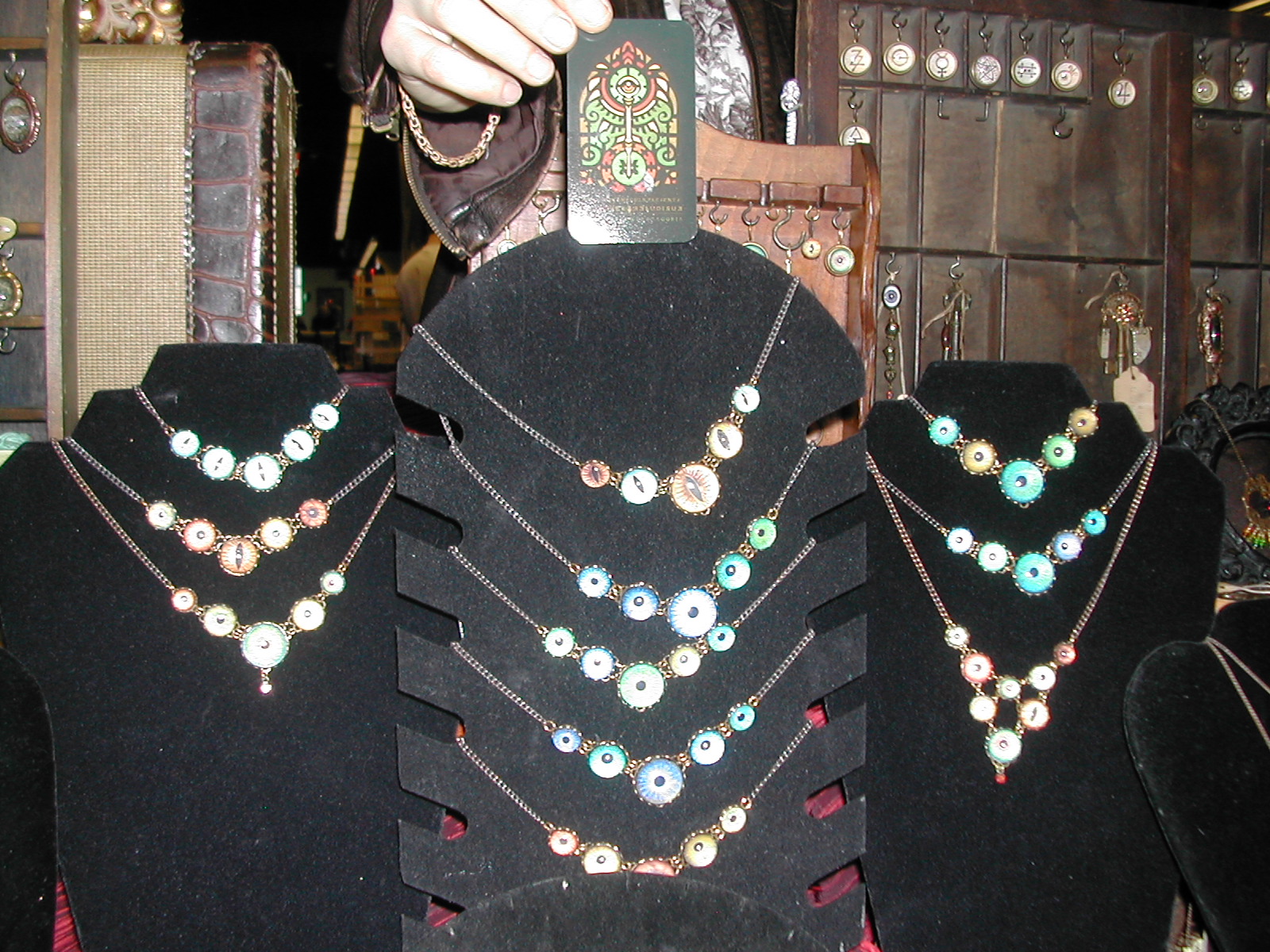 A new artist this year was Kelly M. Kotulak, who makes jewelry that has a recurring theme of eyes and keys. I found it fascinating. I asked for her card, and she gave me one for Studio Hibernacula. Visit her site: it really is gorgeous.