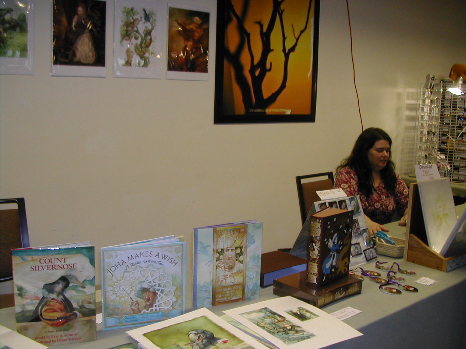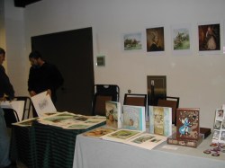 One of my favorite tables is always Omar and Sheila Rayyan’s. Their art is stunningly beautiful. I have several of their prints, and even an original drawing that I bought last year. (It was a serious splurge.) Sheila kindly gave me permission to photograph.