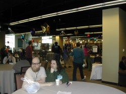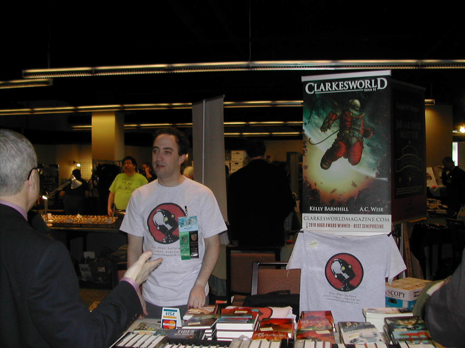 Here are the Clarkesworld table with Neil Clarke and the Broad Universe table with Elaine Isaak. (Elaine is a fellow Odyssey graduate, although she attended a few years before I did.)