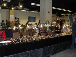 The necklace on the left is one of Kelly Kotulak’s. The table on the right is Laurie Edison’s. If you’ve been to any of the major conventions, you’ve seen Laurie’s stunningly beautiful jewelry, based on natural forms.