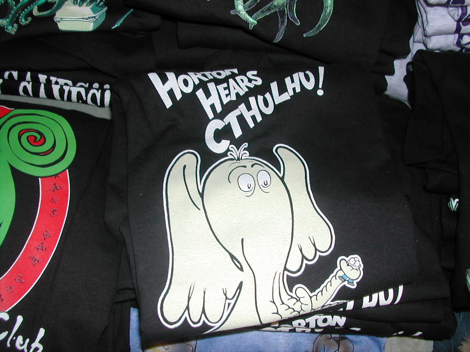 And finally, I think these t-shirts prove exactly what I said in the H.P. Lovecraft panel. Cthulhu is everywhere. We’ve domesticated him. Just wait until he wakes up and finds out that people are knitting him and putting him on t-shirts. He’s going to be seriously upset.