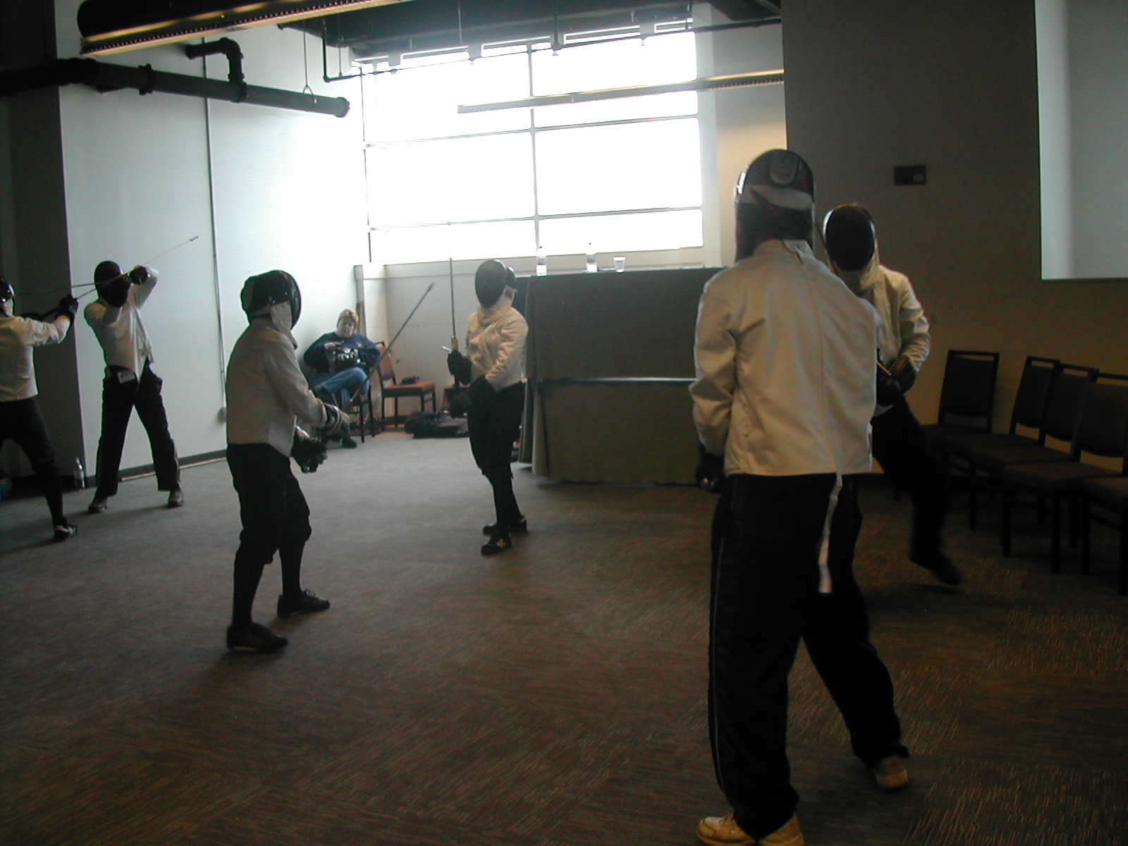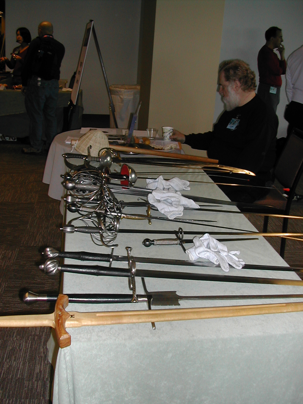 Here is one of the demonstrations put on by the Higgins Armory Museum, as well as a general shot of the room where all sorts of events took place. There were tables where people could sit and snacks of various sorts.