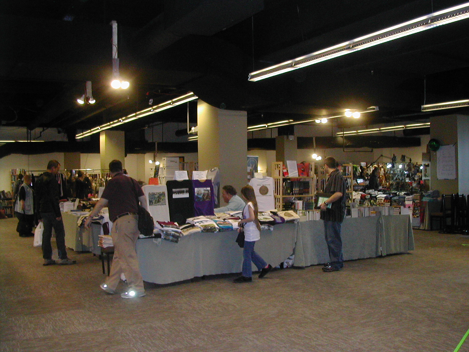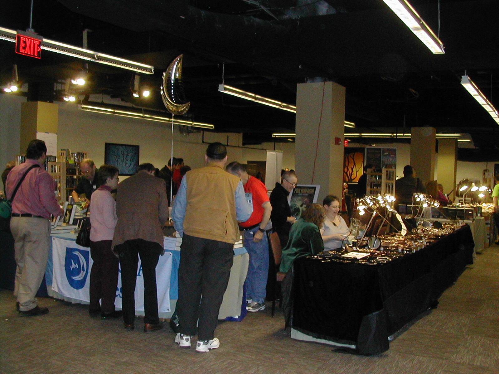 This was the dealer’s area. There are not as many booksellers at Boskone as I’m used to from Wiscon or Readercon, but there are all sorts of other things, jewelry and scarves and of course art. (The actual art gallery was in a separate area that I did not photograph because of copyright issue. I don’t want to reproduce the work of any artist without permission.)
