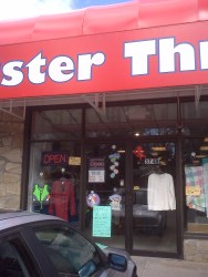 First, I decided to go to Sister Thrift, in Burlington. Here I am about to go thrift shopping, and the store itself.