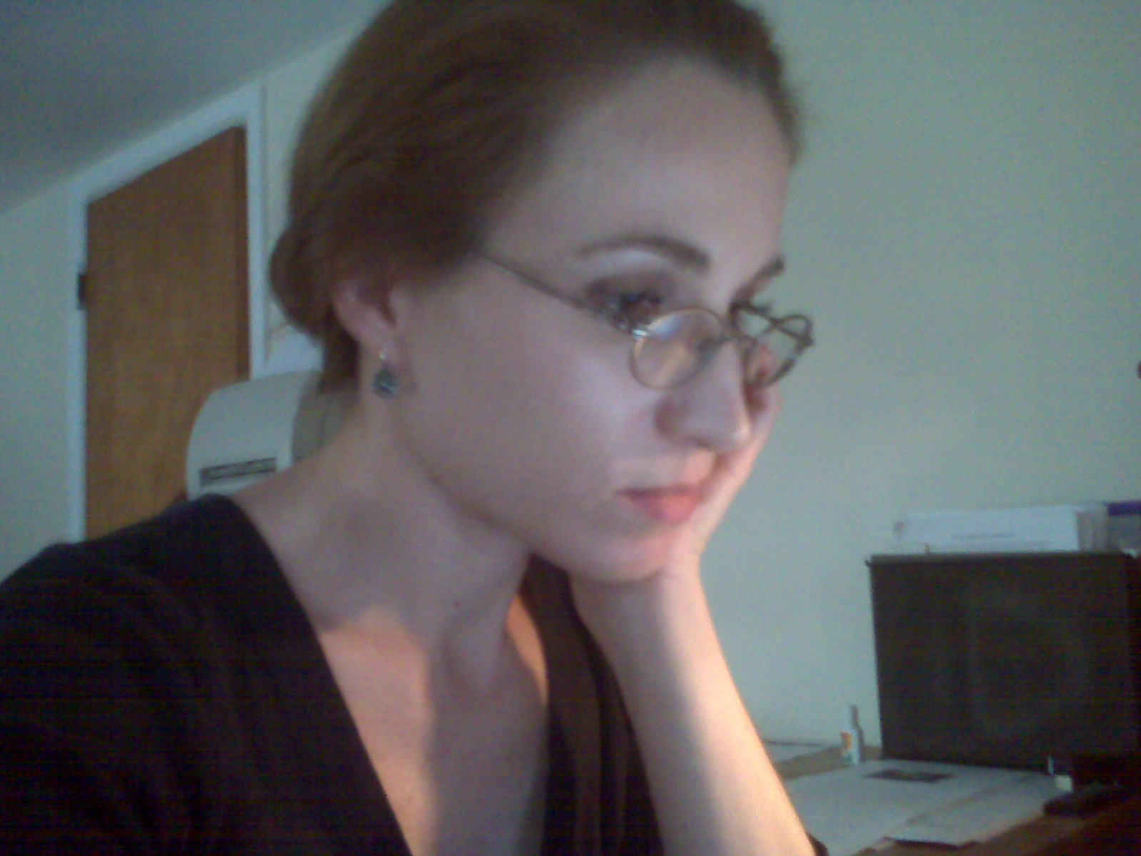 Except of course that Mrs. Moth’s house is surrounded by gardens, and an orchard, and fields. And in case you want to now what Thea looks like, here she is, writing in her Boston apartment: