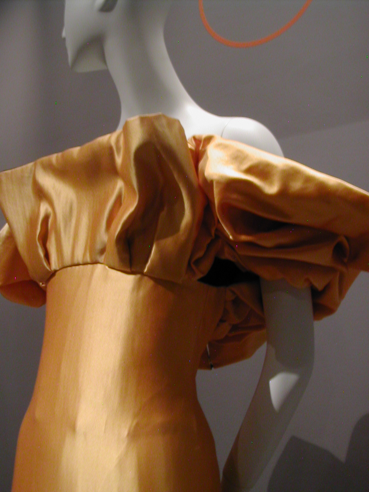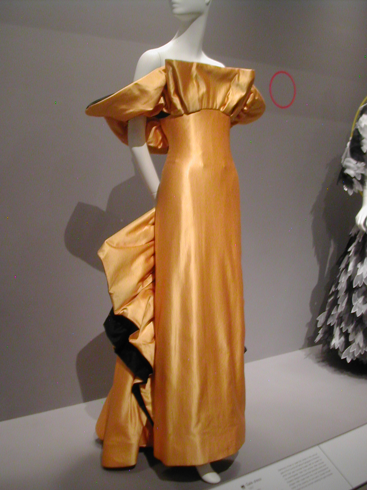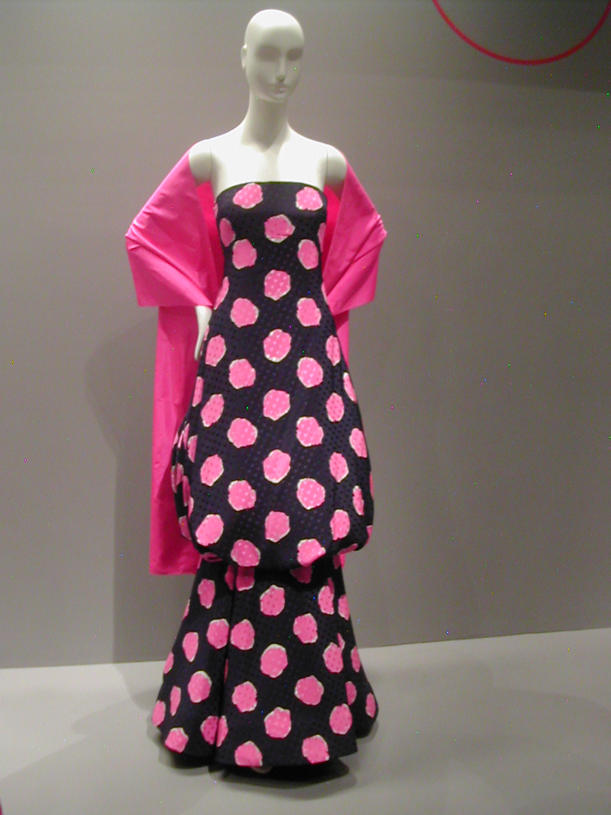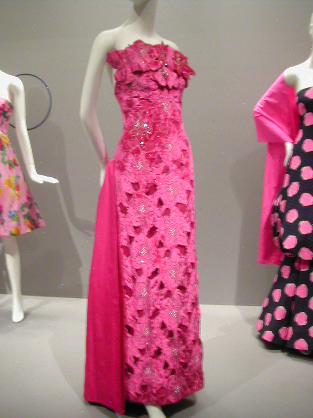 Didn’t quite a lot of us wear a variation of this dress to prom? Scaasi’s is the high-end version, but it’s no more attractive for its expensiveness. It looks more dated, to me, than the polka-dot dress at the beginning of the exhibit. And why would anyone bring back the bustle?
