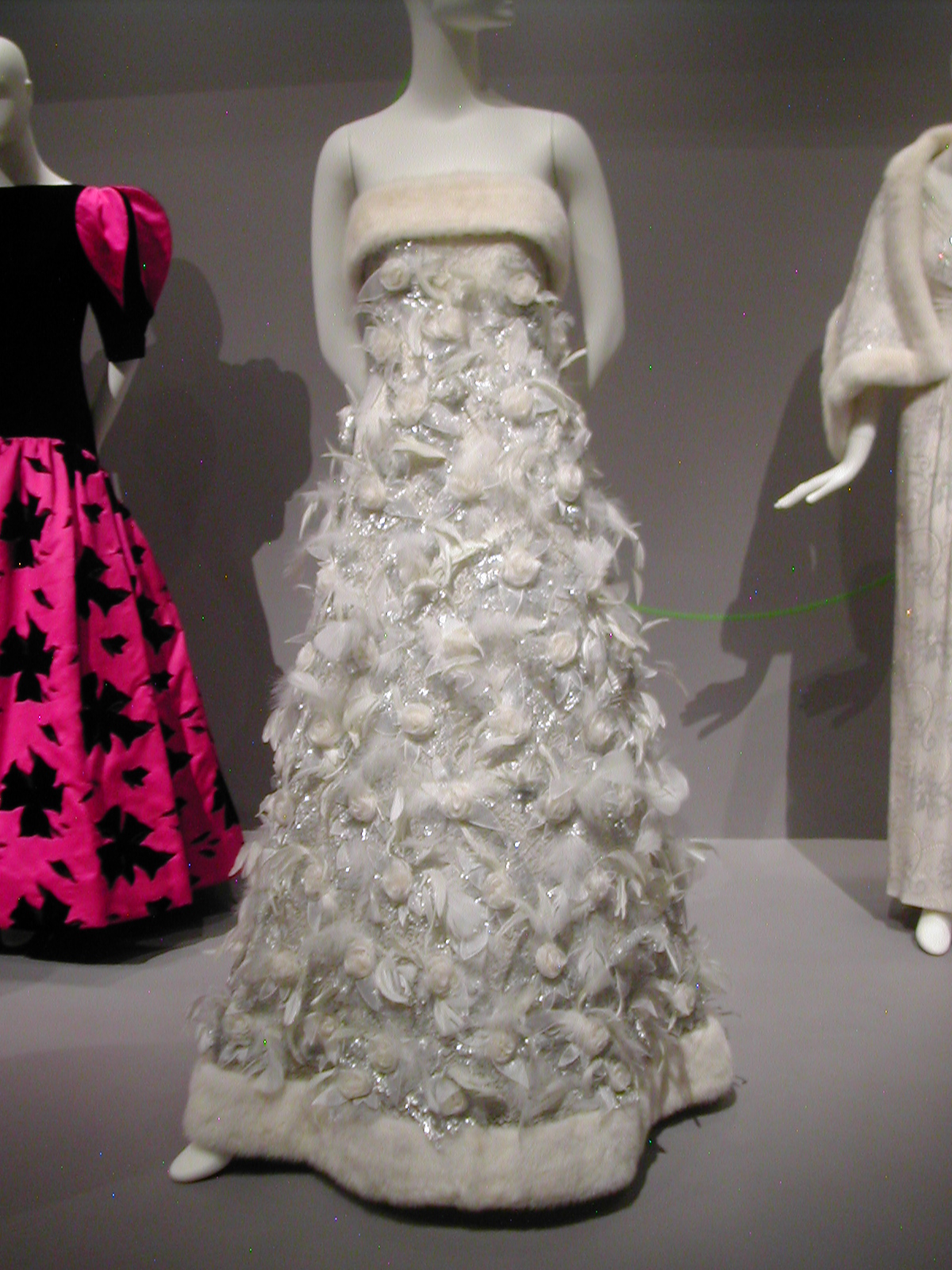 I liked this dress too. It’s a bit over the top, with its feathers and fabric roses and silver embroidery and fur. But still, it’s a Queen of the Birds sort of dress. It’s dramatic, unusual, and lovely. It just needs something around the shoulders. Or maybe a crown.