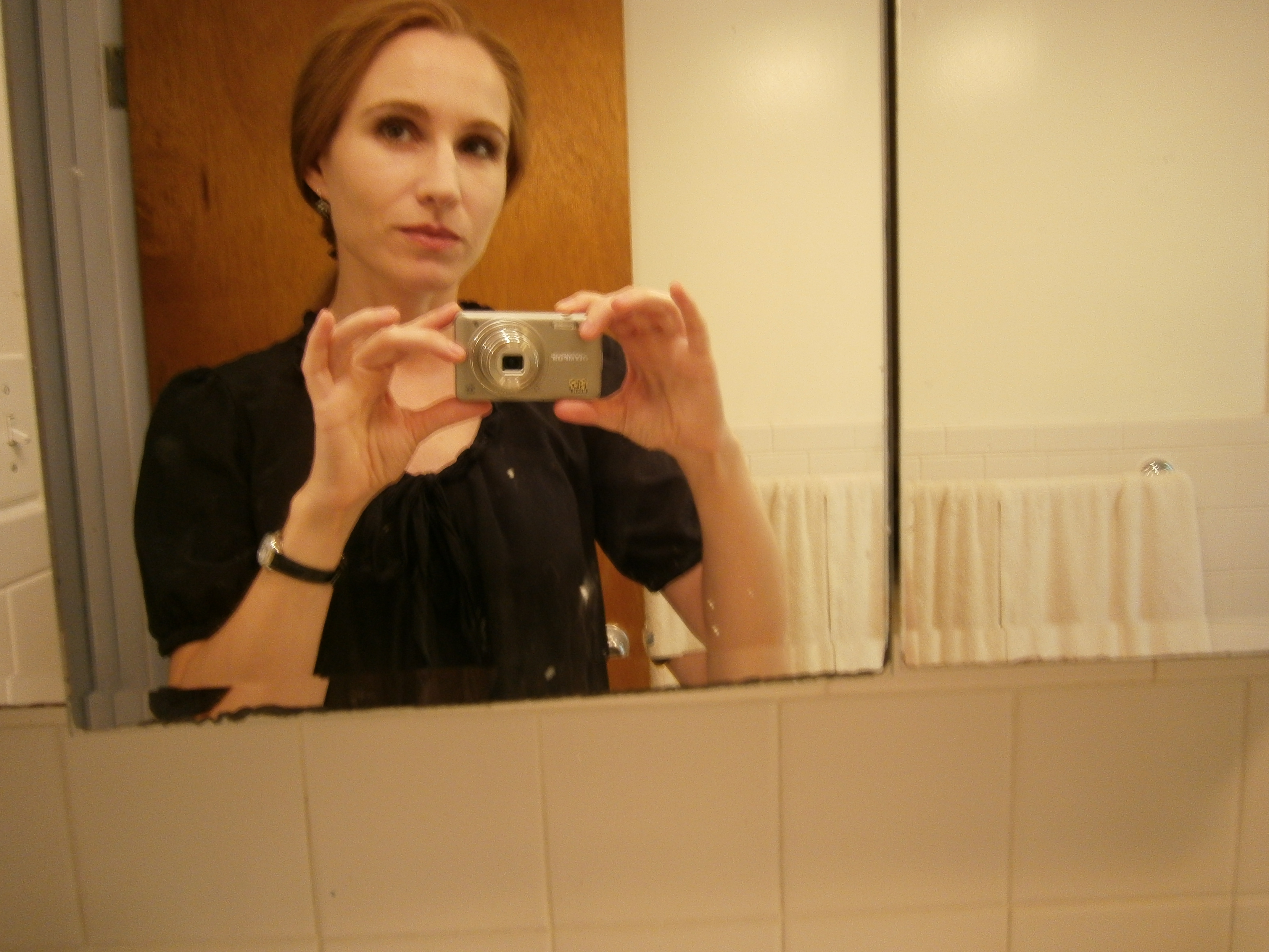 I won’t write much in this post, because I need to get at least some sleep before Readercon starts tomorrow. But here I am, using my new camera to take a picture of myself for the first time. Pretty good, I think. All ready to go to the reading (car to T to Porter Square).