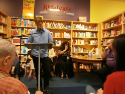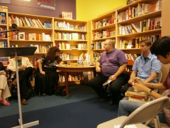 It’s late and I’m tired, but I want to post the pictures from the Naked Cities reading. These were taken with my new camera! The one I bought only a month ago! And finally figured out how to use (sort of). First, here’s the book.