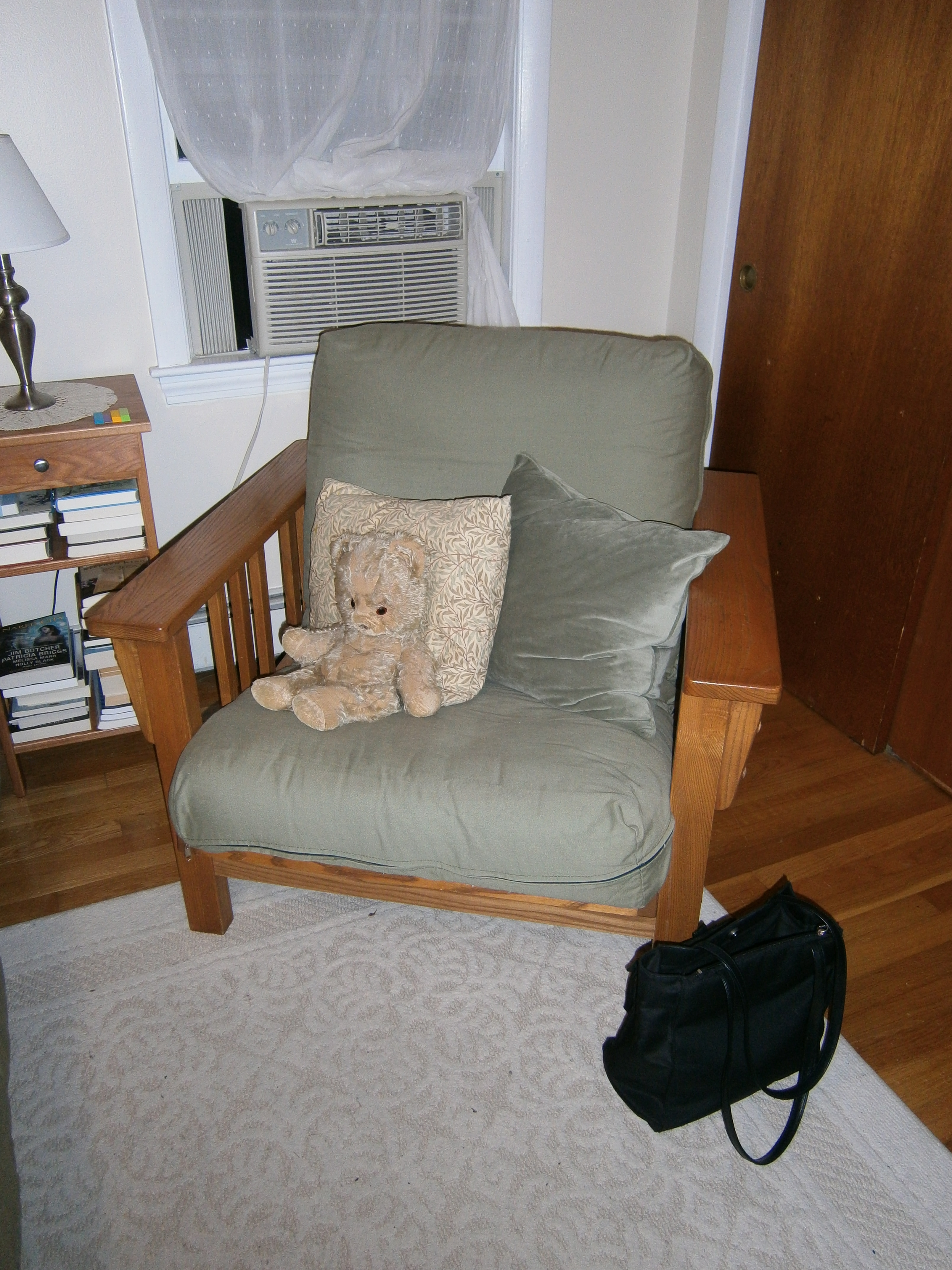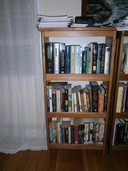 The books are completely unorganized, so when I go to look for one, I look on all the shelves, trying to remember where in the world I put it. I miss the days when I knew where my books were, but that was in the apartment, two years ago.