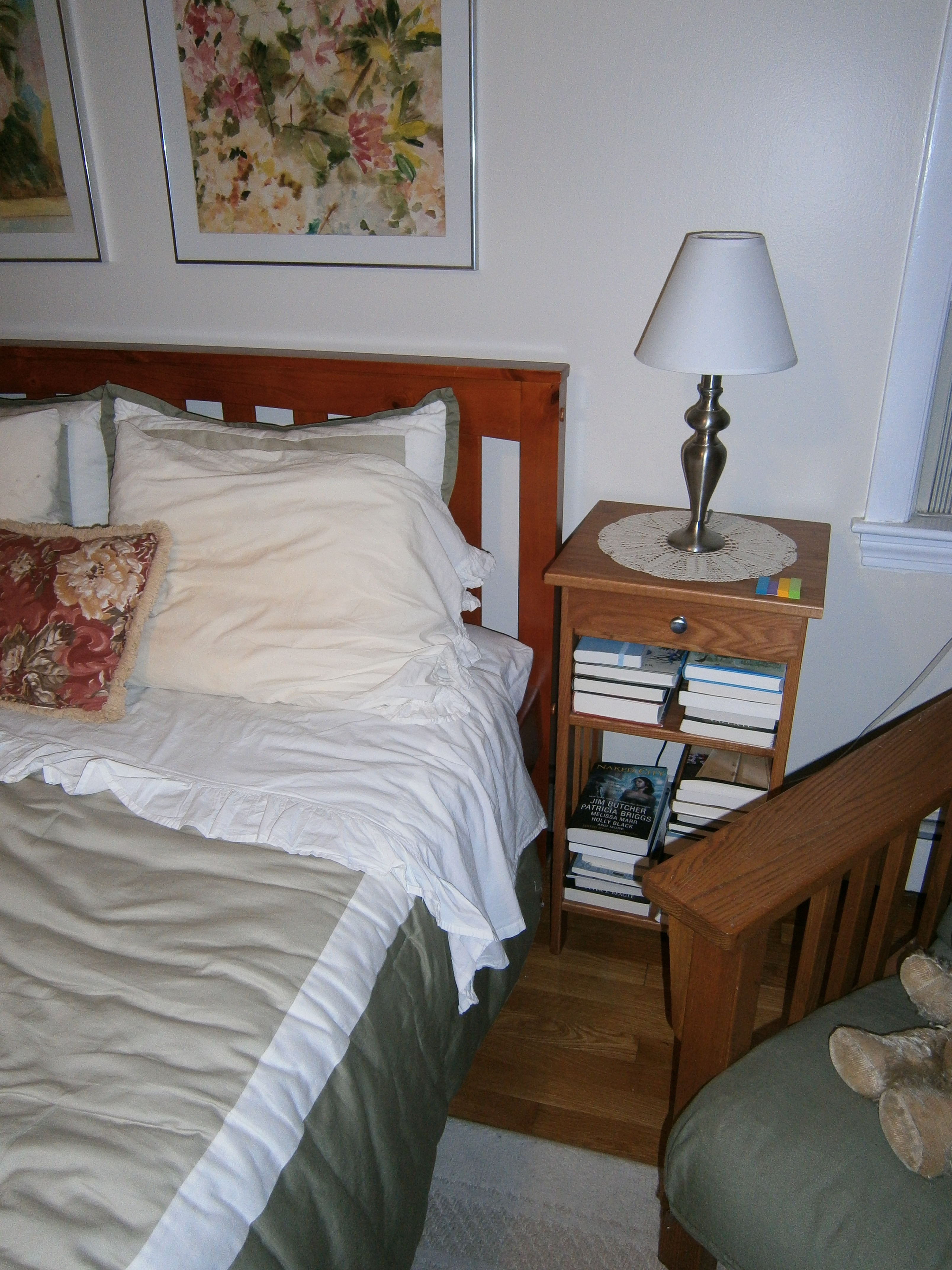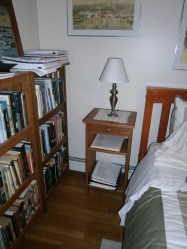 The beside table is overflowing with books I haven’t read, although at least I’ve managed to clear off the chair.