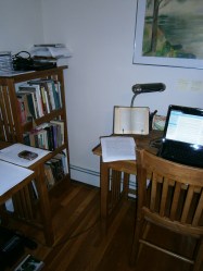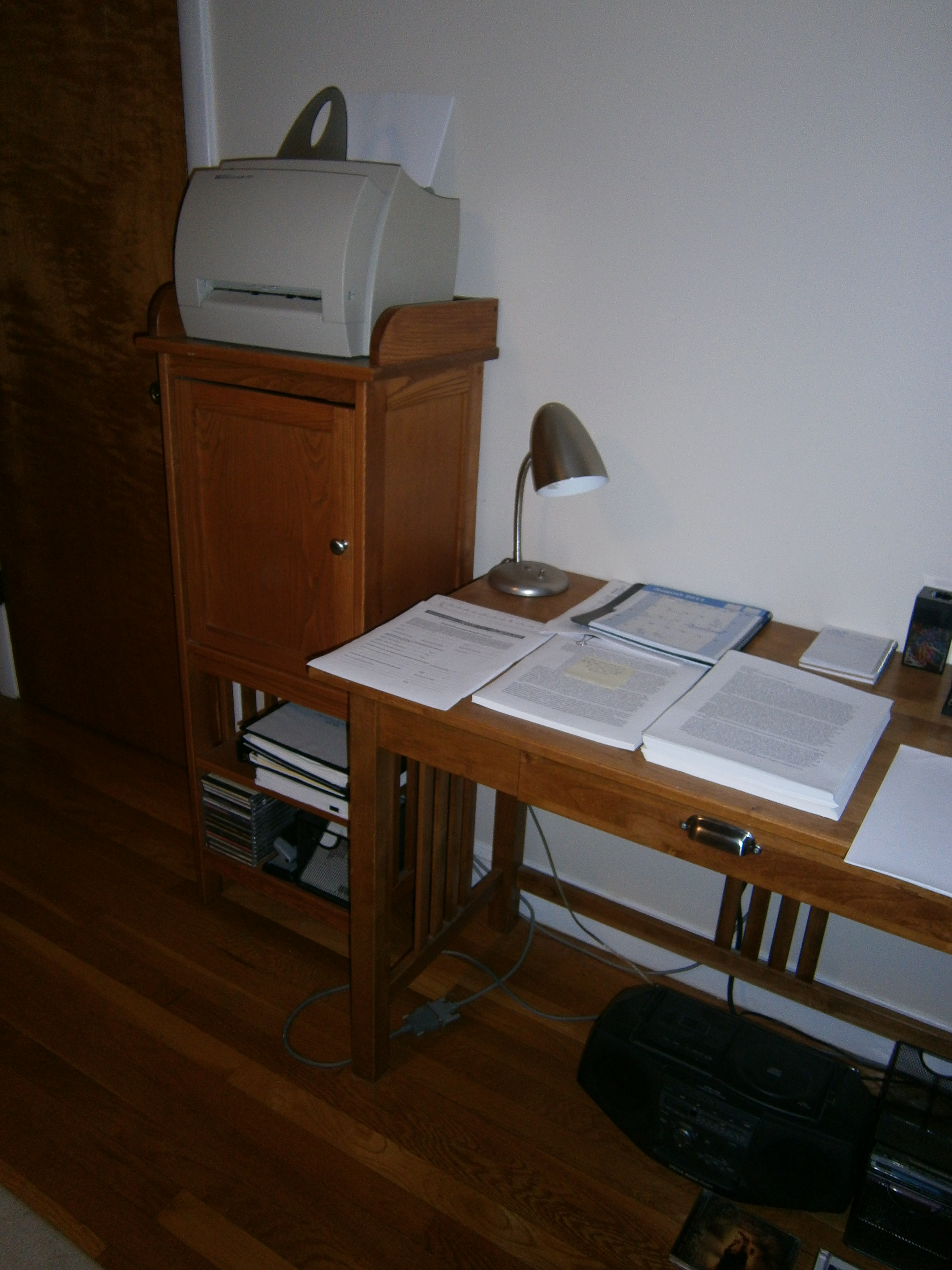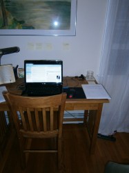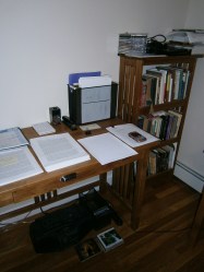 And that’s the end of the tour. The desk with piles, the printer. Paper, paper everywhere. When I die, will I be held personally responsible for the deaths of all those trees?