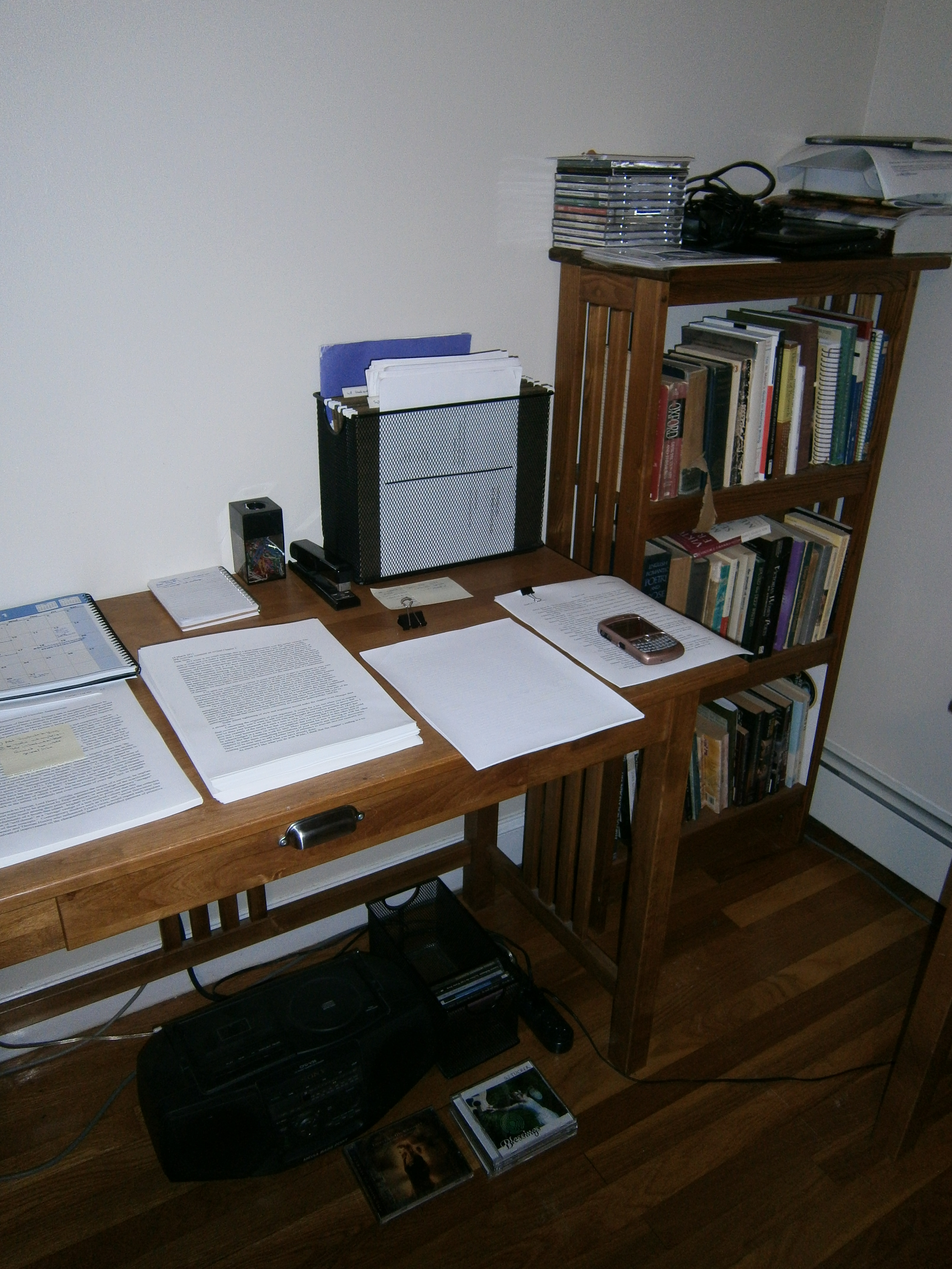 The other desk is covered with the dissertation, in piles. Also my calender, marked to show all the deadlines. There are so many of them!