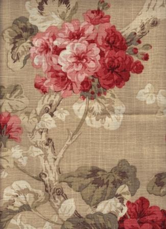 It’s the same pattern as the pillows I bought several weeks ago, pink and red geraniums on a taupe background. I fell in love with it when I saw the pillows, and I still love it. So I put one of the pillows on the chair to see what it would look like: