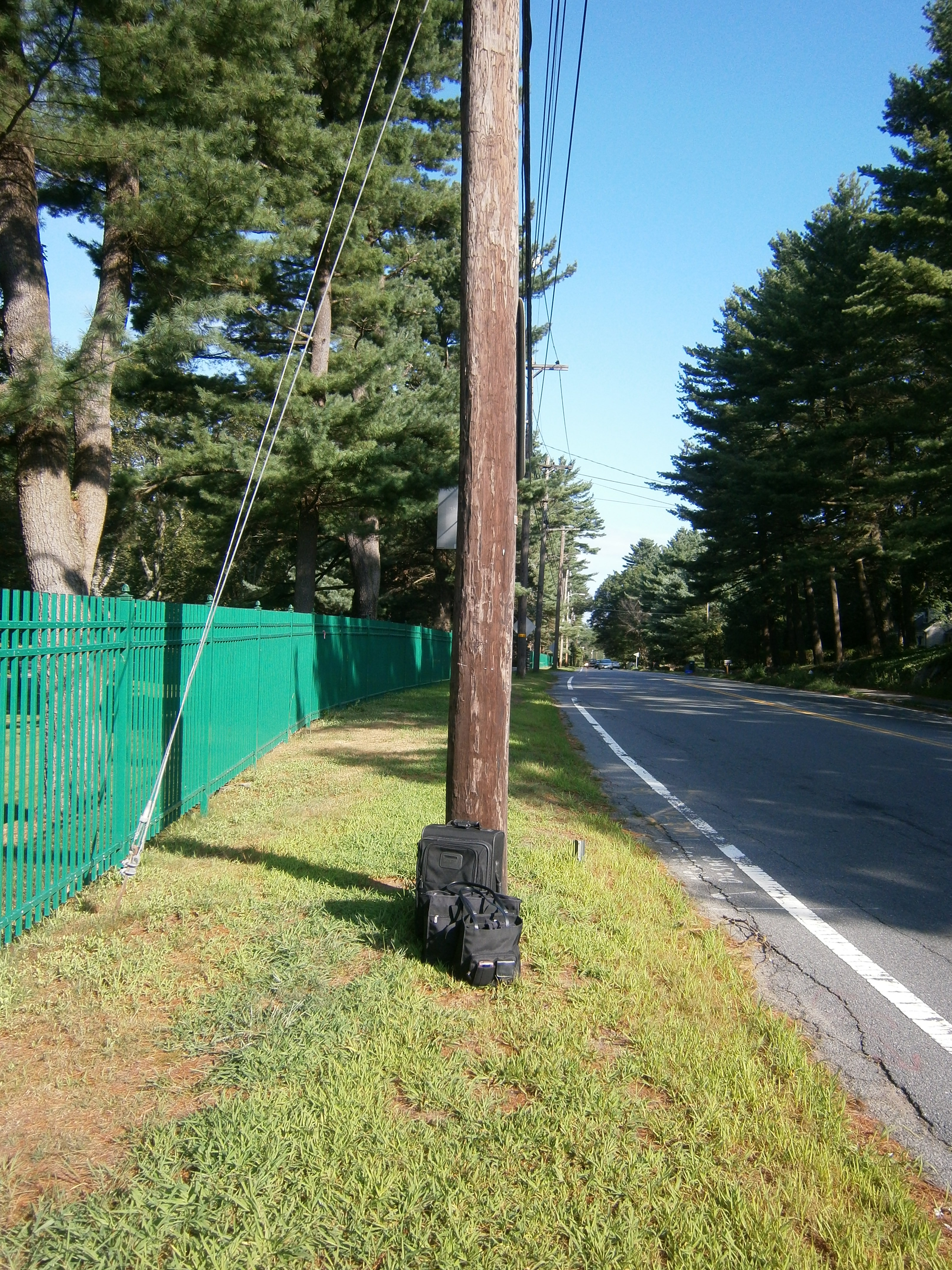 I took two buses to get to New York. I wanted to take pictures of the three bus stops, but I only ended up taking pictures of two. Here is the first one, where I’m waiting for the bus to the station. It looks so rural, doesn’t it?