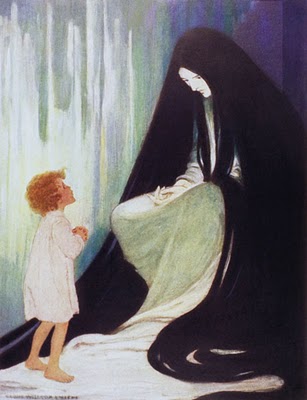 (This is an illustration for At the Back of the North Wind by Jessie Wilcox Smith.)