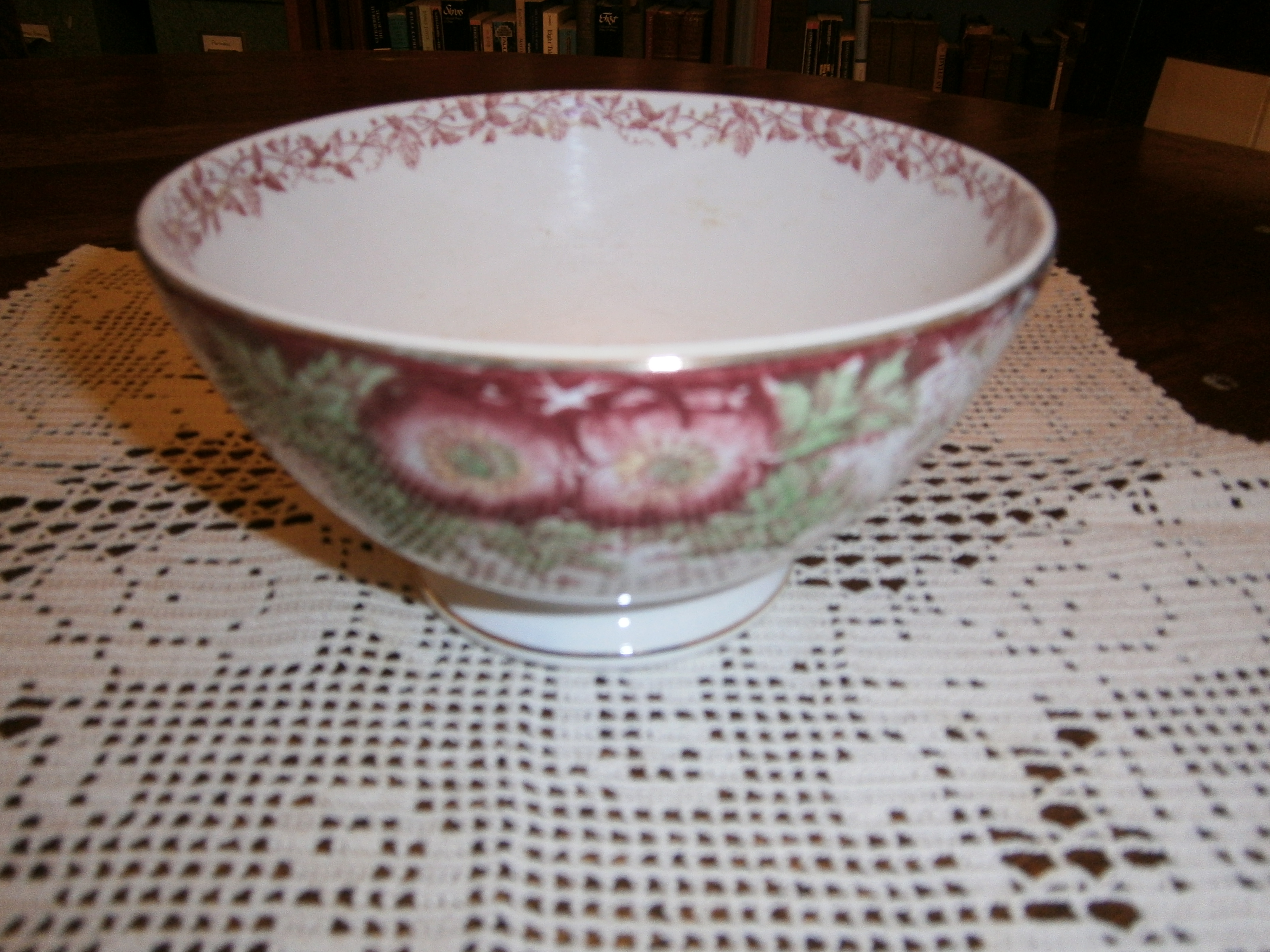 I bought two things recently that I thought were very much in my style. The first is an old bowl, probably late nineteenth or early twentieth century, with red transferware and hand- painted details.