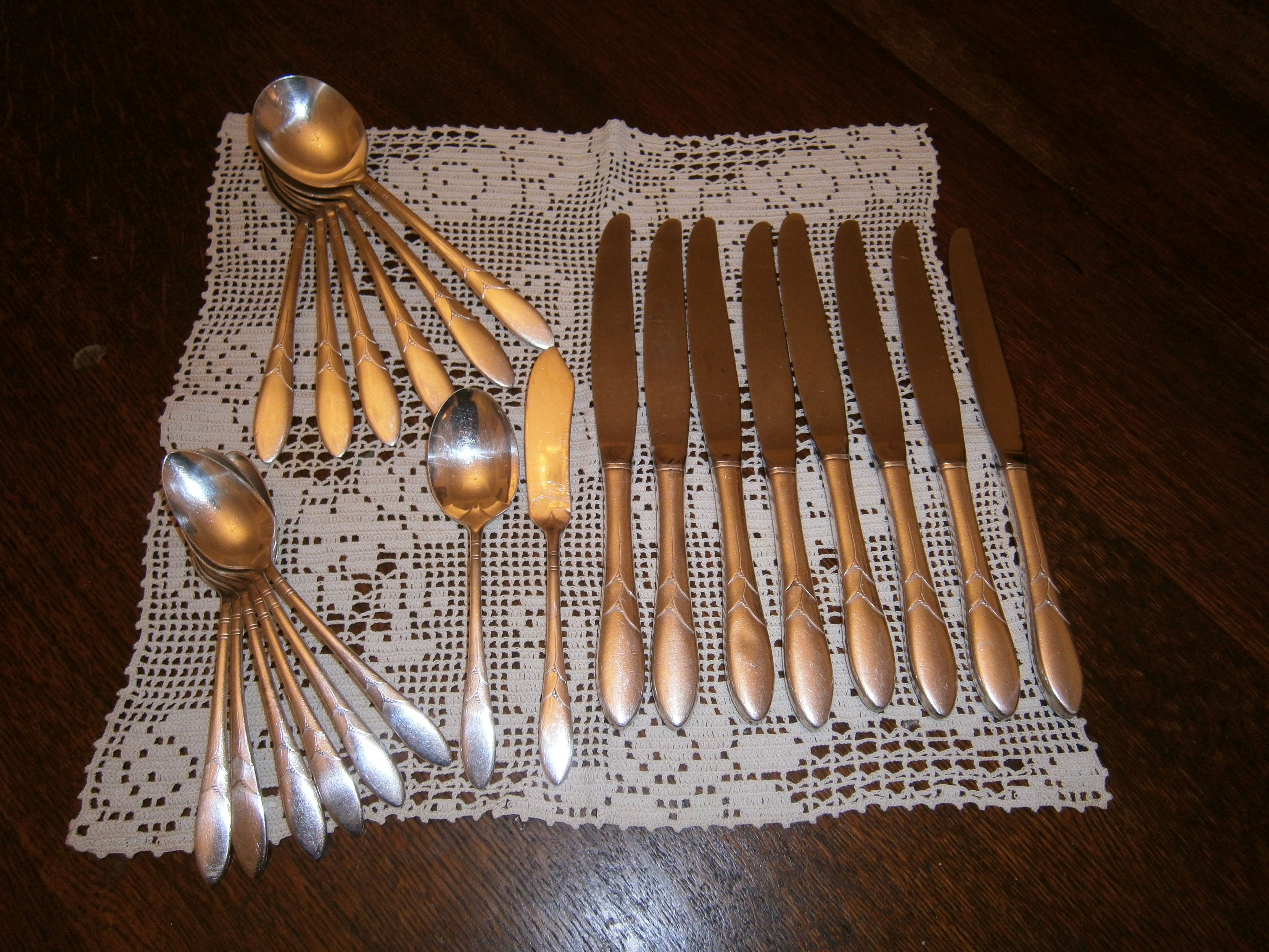 I think it’s rather pretty. The second is a set of silver plate with a flower pattern on the handle.