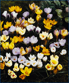 First, the species crocuses come up, poking through the snow. I used to scatter them all over the lawn.