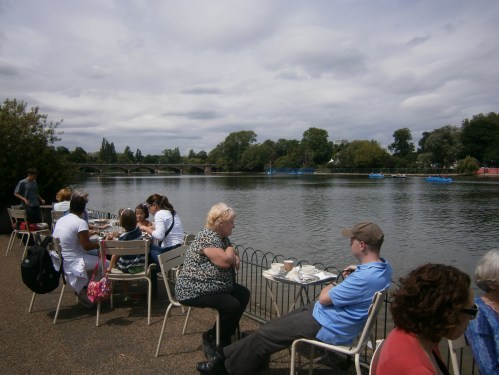 This is a non sequitur, but as I was walking along Piccadilly, I came upon Fortnum & Mason. Of course I had to go in. The strange thing was, as I was standing there looking around, I had one of those moments I sometimes have in which I realize that I’ve already dreamed what I am doing. I had dreamed of being in Fortnum & Mason several years before. It had looked very much the same. I don’t know, was that my brain playing tricks on me? I tend to think that time is a much stranger thing than we think it is, and that sometimes we get echoes and indications from the future. But anyway, that was the odd moment I had. Below is a picture of the Serpentine. It’s a sort of long pond, with geese and duck and swans, and if you follow it, you will end up in Kensington Gardens. Where Peter Pan used to play.